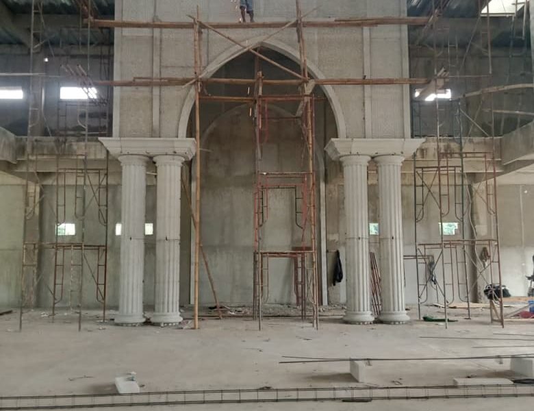 Pembuatan struktur GRC kubah dan menara dengan desain menyesuaikan arsitektur masjid.